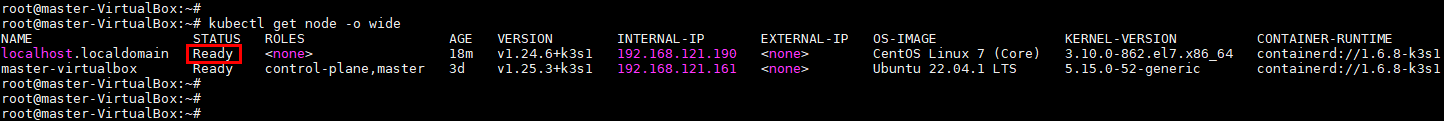 - 기존 마스터 노드 외에 새로운 워커 노드가 Ready 상태로 조회되면 정상적으로 클러스터가 구성됨