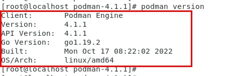 - 빌드 후에 podman 버전이 4.x 로 설치된 것을 확인할 수 있음!!