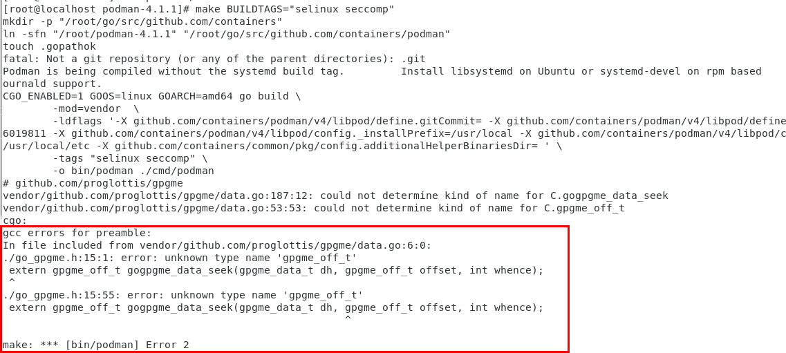 * make BUILDTAGS="selinux seccomp" 명령어로 인해 빌드 도중 아래와 같은 에러를 만나게되었다면 pgpm 패키지를 업데이트 해주자