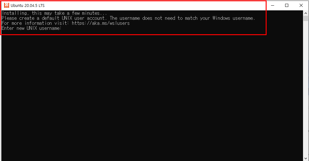 - 설치가 완료되면 아래와 같이 username을 입력하라는 메세지가 나올때까지 기다려줌