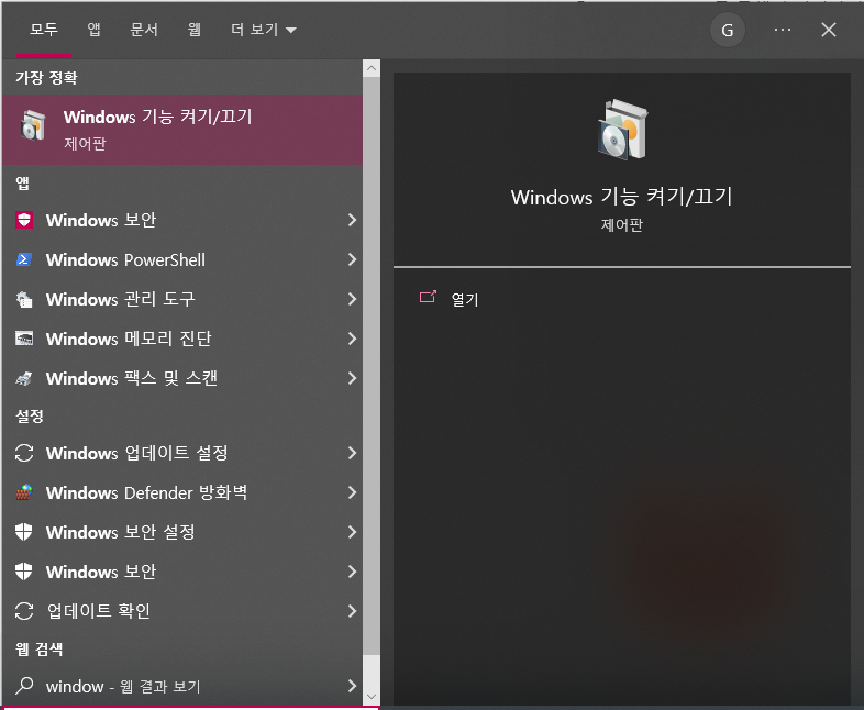 - 해당 옵션이 체크가 안되어 있으면 체크를 해주고 PC 재부팅을 해주면 됨