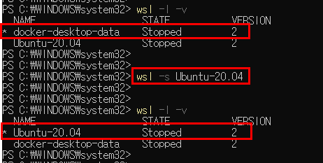 wsl -s [변경할 WSL]