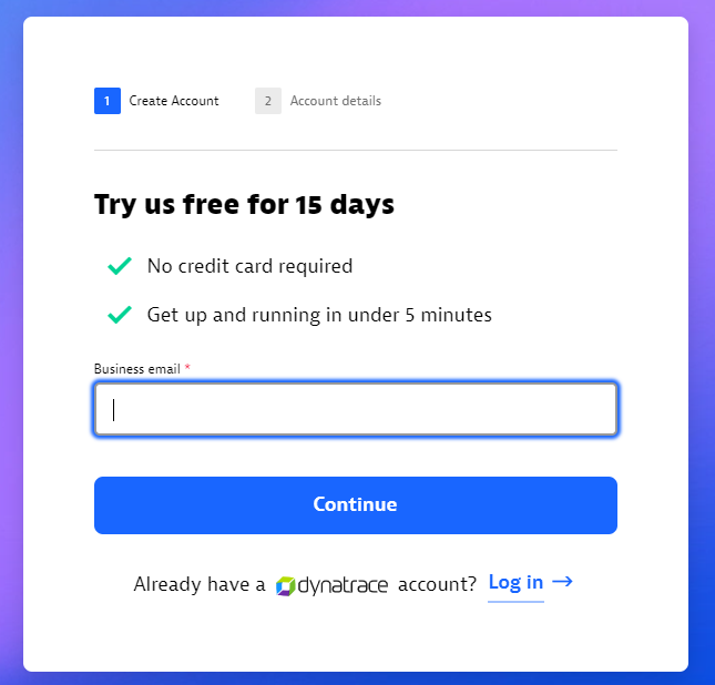먼저, https://www.dynatrace.com/ Dynatrace의 공식 홈페이지로 들어가서 [Free trial] 키를 선택한다.